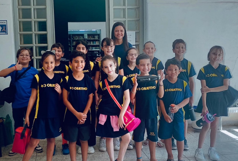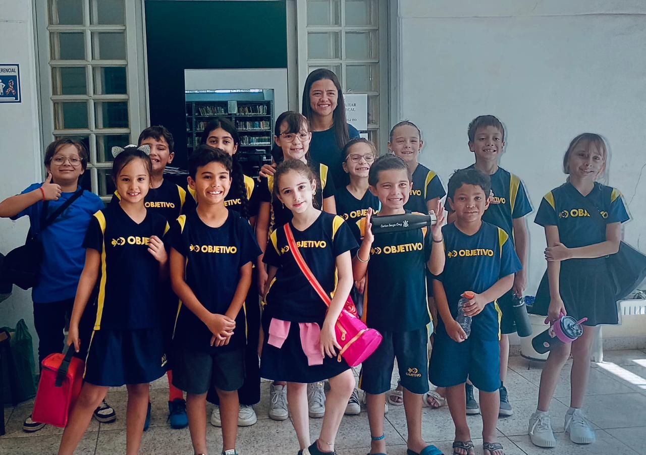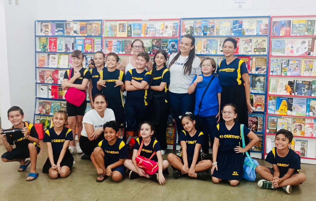 Para marcar a data, a biblioteca recebeu a visita dos alunos do 3º ano do Colégio Objetivo, em um momento que uniu curiosidade, encantamento e aproximação com o universo literário. Entre estantes e páginas, os estudantes puderam vivenciar a importância desse espaço que vai além dos livros e se torna um ambiente de construção de conhecimento e imaginação.