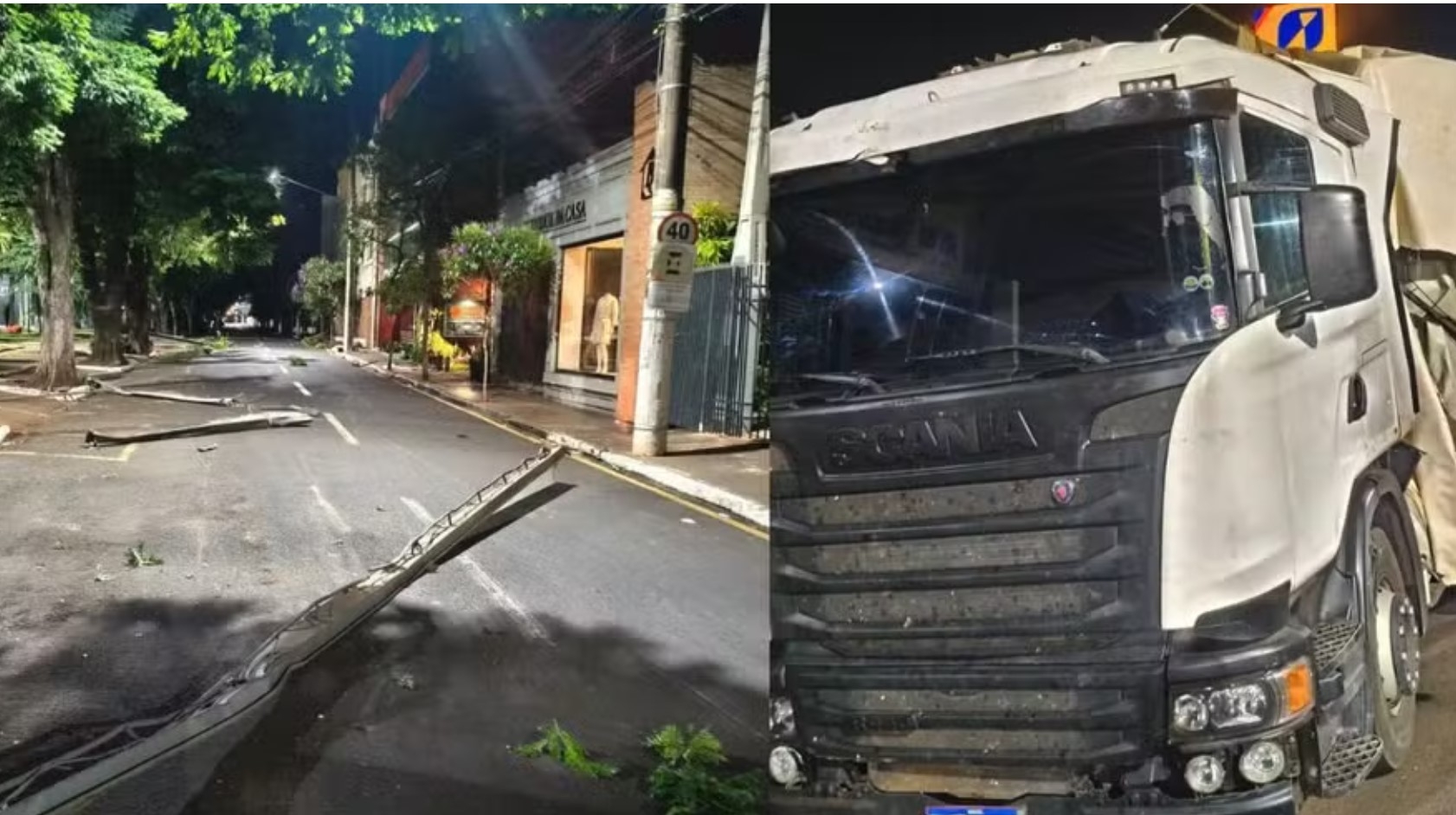 Um caminhoneiro embriagado causou diversos danos no centro de Ourinhos, na madrugada de deste domingo (1º).