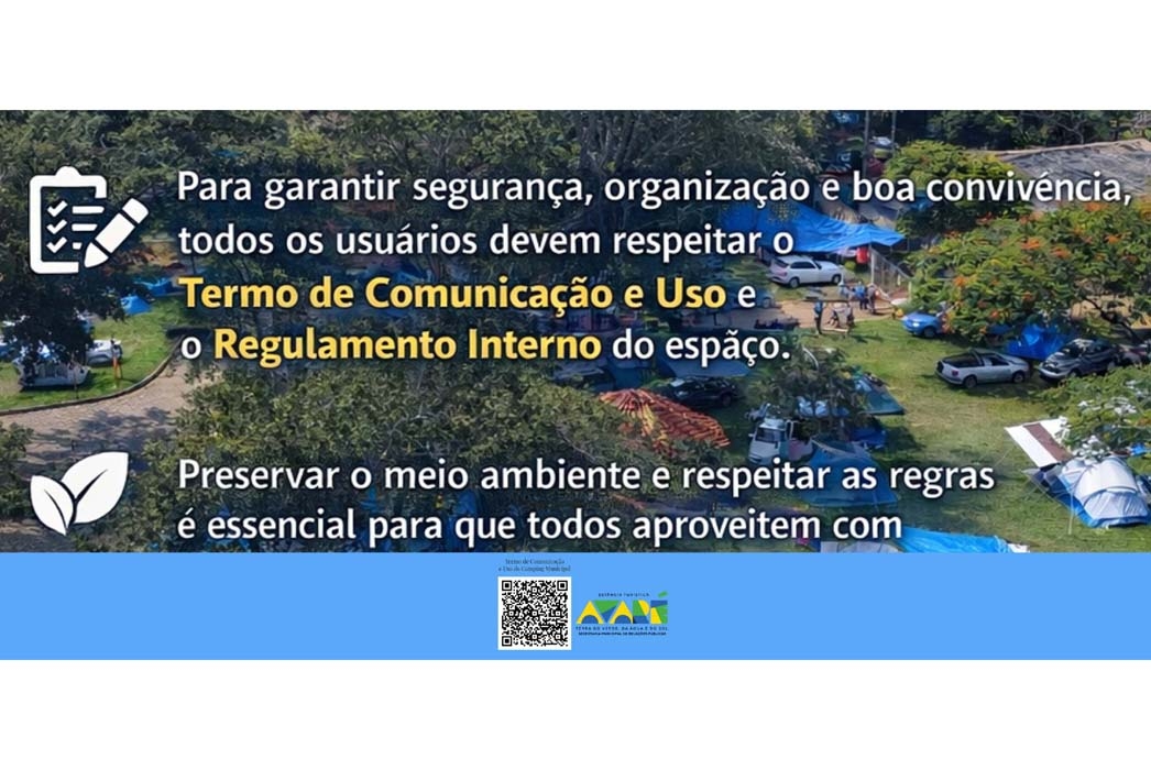 Como parte da preparação para o Carnaval, a administração reforça a vigência do Termo de Comunicação e Uso e do Regulamento Interno do Camping, que estabelecem regras claras para utilização do espaço, preservação ambiental e convivência coletiva.