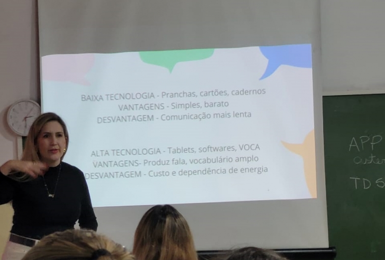 Durante a formação, a palestrante apresentou conceitos, metodologias e ferramentas práticas que podem ser utilizadas no cotidiano escolar, possibilitando que os profissionais ofereçam apoio mais efetivo aos estudantes que necessitam desse tipo de comunicação. Além disso, foram discutidas estratégias para fortalecer a parceria entre escola e família, assegurando que o processo comunicativo seja contínuo e favoreça o desenvolvimento global do aluno.