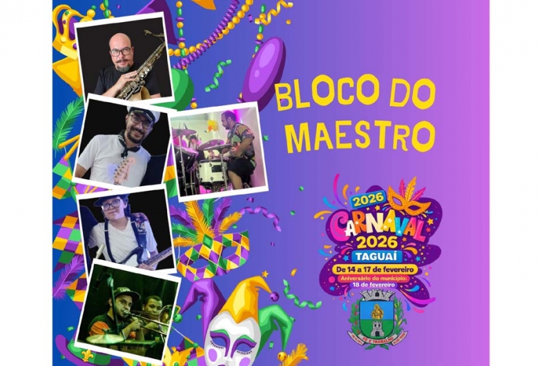 Na segunda-feira (16), a partir das 20 horas, está previsto o Cortejo de Carnaval com o Bloco do Maestro. O grupo percorrerá ruas da cidade em direção ao palco principal, executando marchinhas e reforçando o clima típico da festa popular.