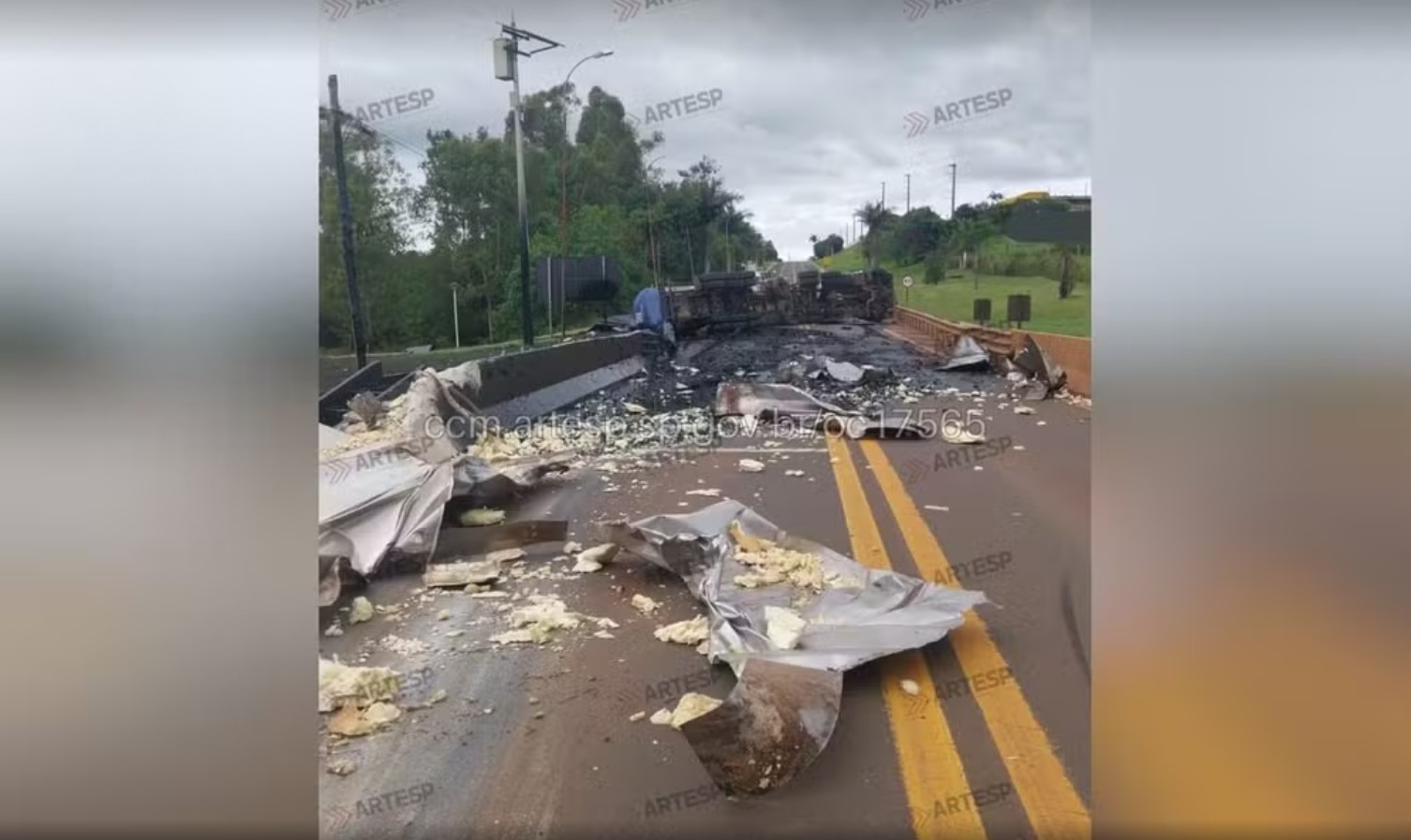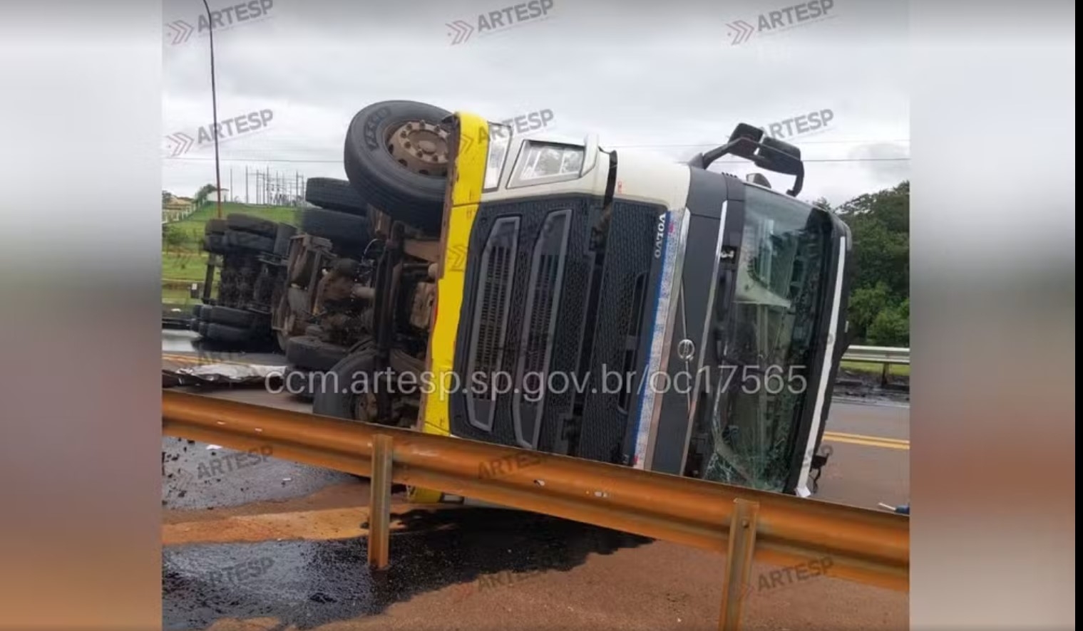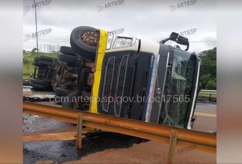 A Artesp informou que, por motivos ainda a serem esclarecidos, o motorista perdeu o controle da direção e a carreta tombou na rodovia. Em seguida, o veículo atingiu uma defensa metálica, uma placa de sinalização e uma barreira de concreto.