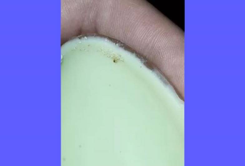 Um vídeo gravado momentos depois do flagrante e enviado ao g1 mostra uma larva na borda do produto.