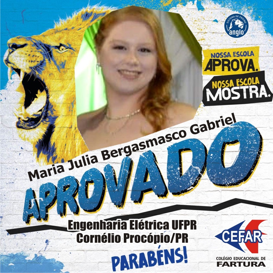 Nesta semana, o Colégio Educacional de Fartura (Cefar-Anglo) compartilhou a lista dos alunos aprovados nos vestibulares, reiterando os parabéns aos "futuros profissionais" por alcançarem seus objetivos.