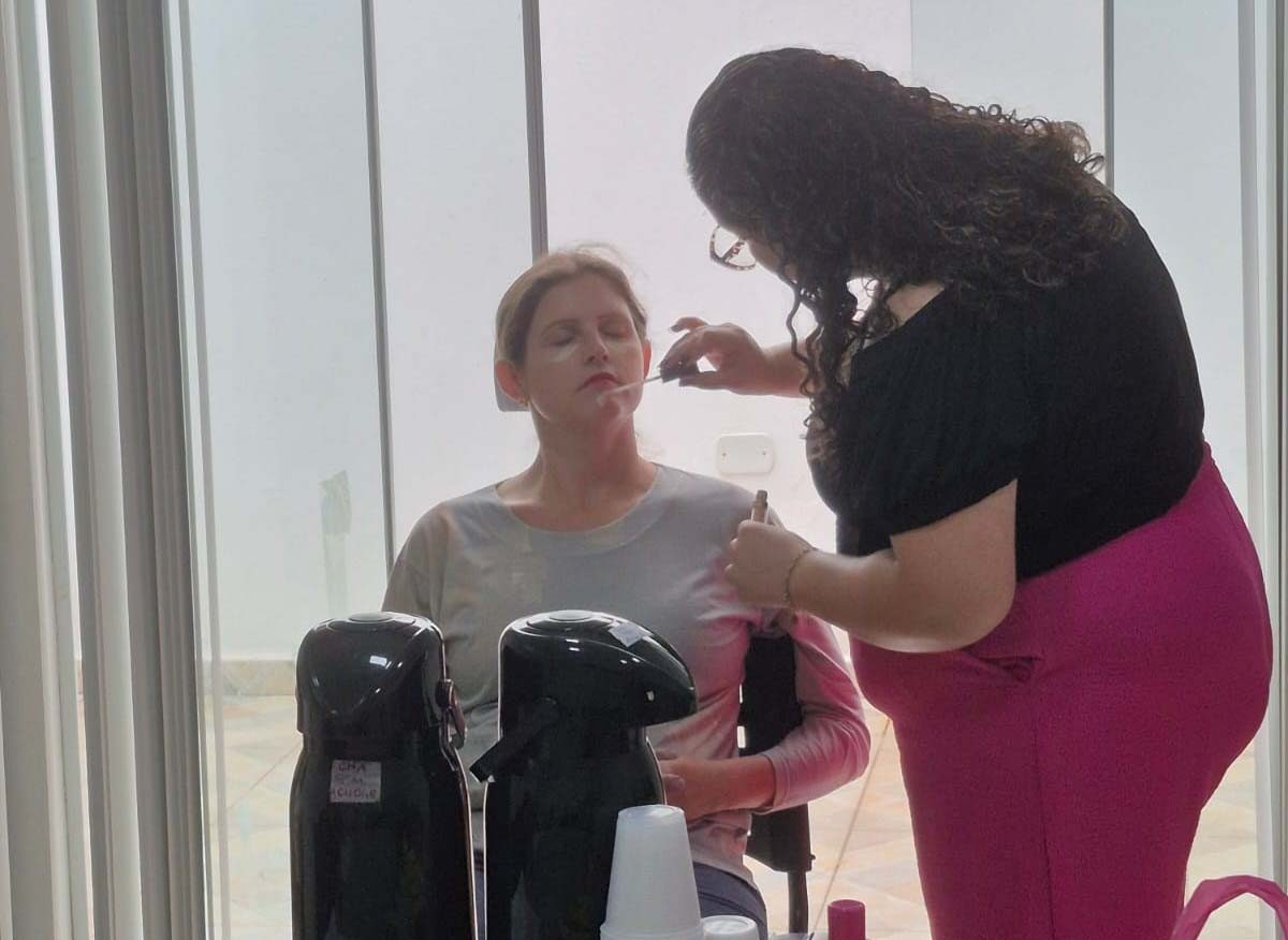 A atividade também contou com a participação de Camille, que realizou uma aula prática de maquiagem, trabalhando a autoestima e o autocuidado das participantes, reforçando a importância de pequenos momentos dedicados a si mesmas.