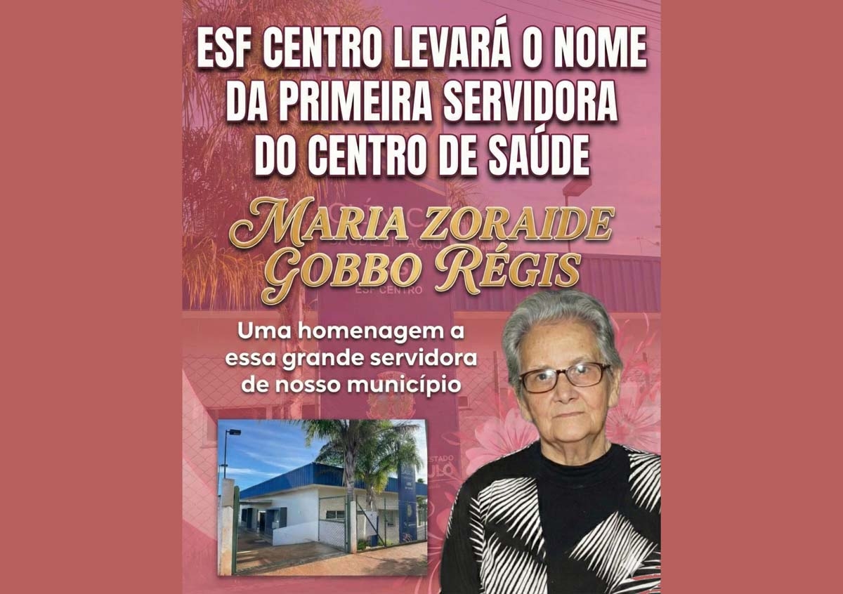 O Centro de Saúde da cidade de Taguaí passa a carregar, a partir desta semana, o nome de Maria Zoraide Gobbo Régis, em homenagem à primeira servidora pública da unidade e a uma das figuras mais marcantes da história da saúde no município.