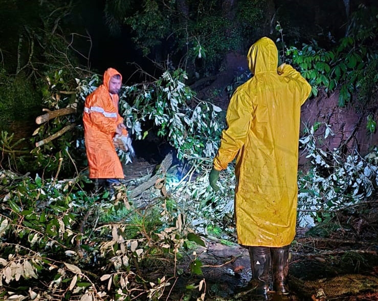 A forte chuva que atingiu o município na noite de sexta-feira (20), mobilizou equipes da Defesa Civil após o registro de diversos pontos de queda de árvores em diferentes regiões da cidade.