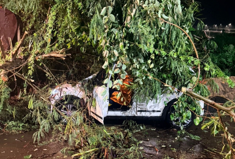 De acordo com dados do pluviômetro, foram registrados aproximadamente 90 milímetros de chuva em um curto período de tempo, volume considerado significativo e suficiente para causar transtornos, especialmente em áreas com árvores de grande porte.