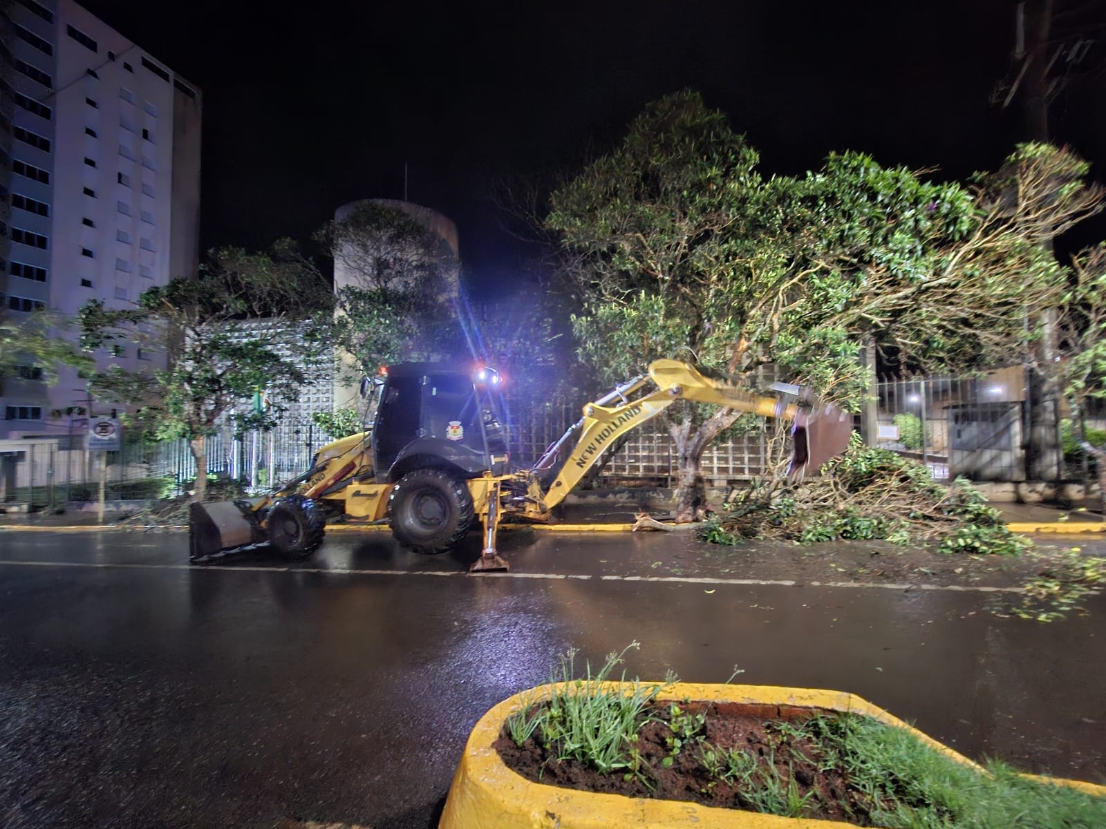 Desde as primeiras horas do incidente, as equipes da Defesa Civil vêm atuando nos atendimentos emergenciais, priorizando a remoção de árvores caídas, liberação de vias públicas e vistoria de estruturas que possam ter sido danificadas.