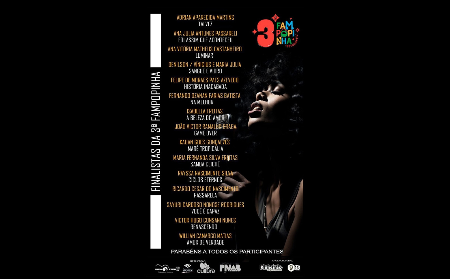 A 3ª Fampopinha Estudantil é uma realização da empresa Correndo o Trecho Divulgações Artísticas em parceria com a Secretaria Municipal de Cultura e Faculdade Eduvale de Avaré.