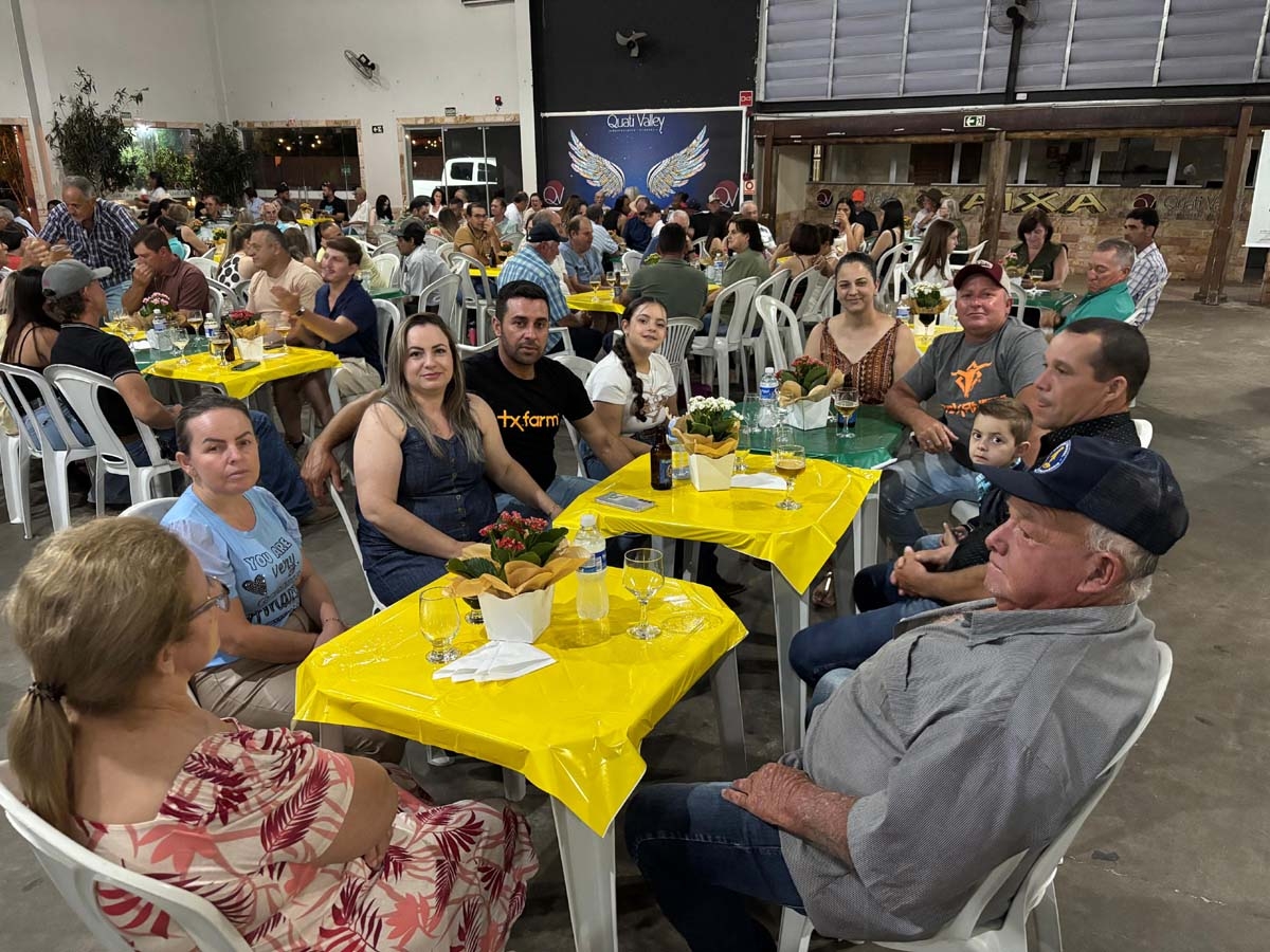 Na noite de sexta-feira (5), a Cooperativa dos Criadores de Suínos da Caieiras de Fartura realizou uma confraternização no Quati Valley, em Fartura, reunindo diretoria, colaboradores, cooperados e familiares para celebrar mais um ano de trabalho e conquistas. Na ocasião, foi servido um jantar aos participantes, proporcionando um momento de integração e confraternização entre os presentes.