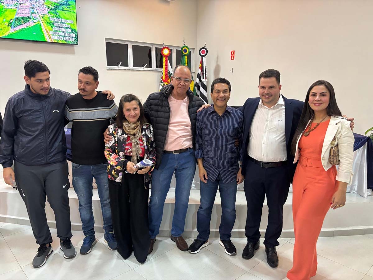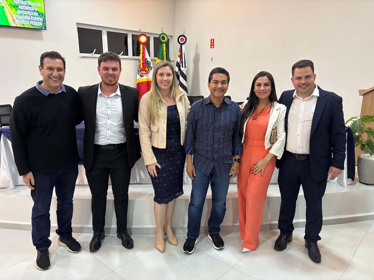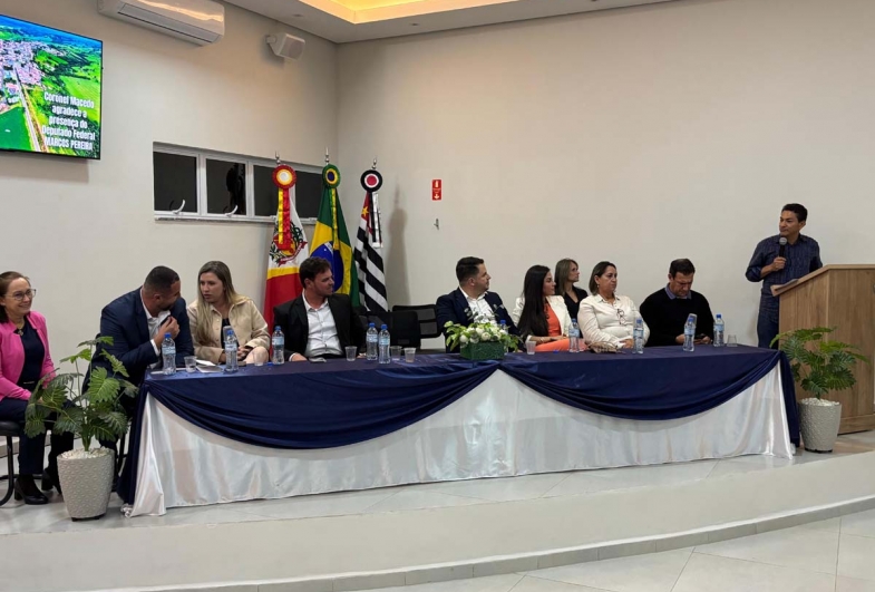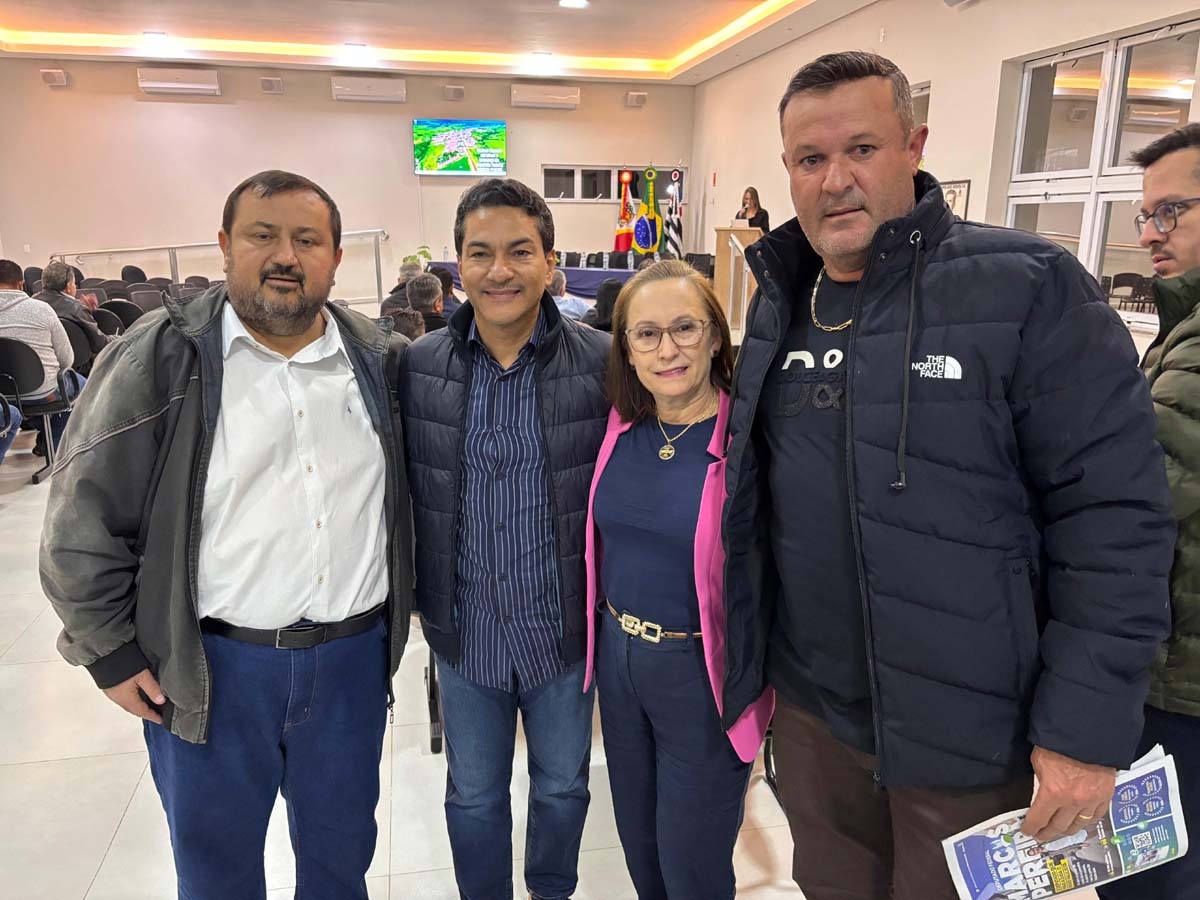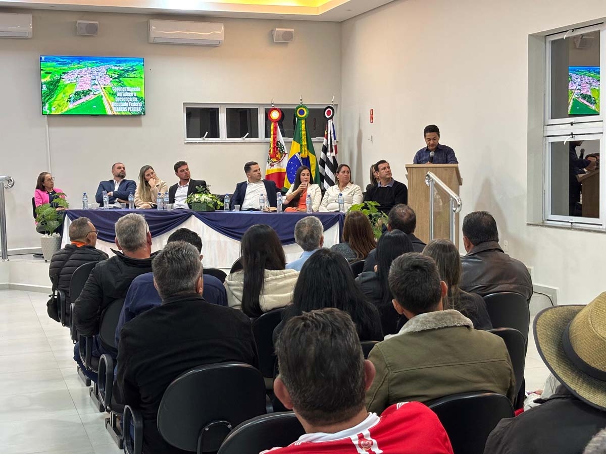 O evento contou com a presença do prefeito Diego do Nino, do vice-prefeito Vinícius Tonon, do ex-prefeito José Carlos Tonon, da presidente da Câmara Edina Tonon, do vice-presidente Carlito Fabri, do 1º secretário Alessandro Português, do 2º secretário Ton do Marino, além de Mario Garcia, presidente do União Brasil, Carlinhos Turcão, Clodoaldo Garcia, secretários, diretores de departamentos municipais e lideranças locais e regionais.