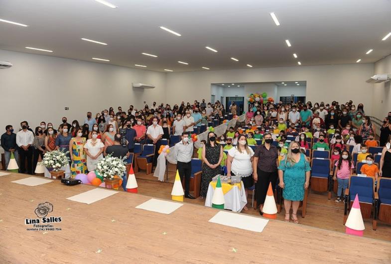 No total, cinco unidades fazem parte da rede municipal de ensino e todas prepararam com dedicação a solenidade. Houve outorga do diploma de conclusão para os formandos e o tradicional juramento.