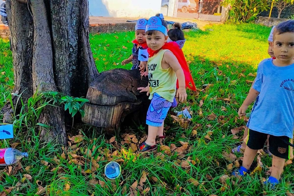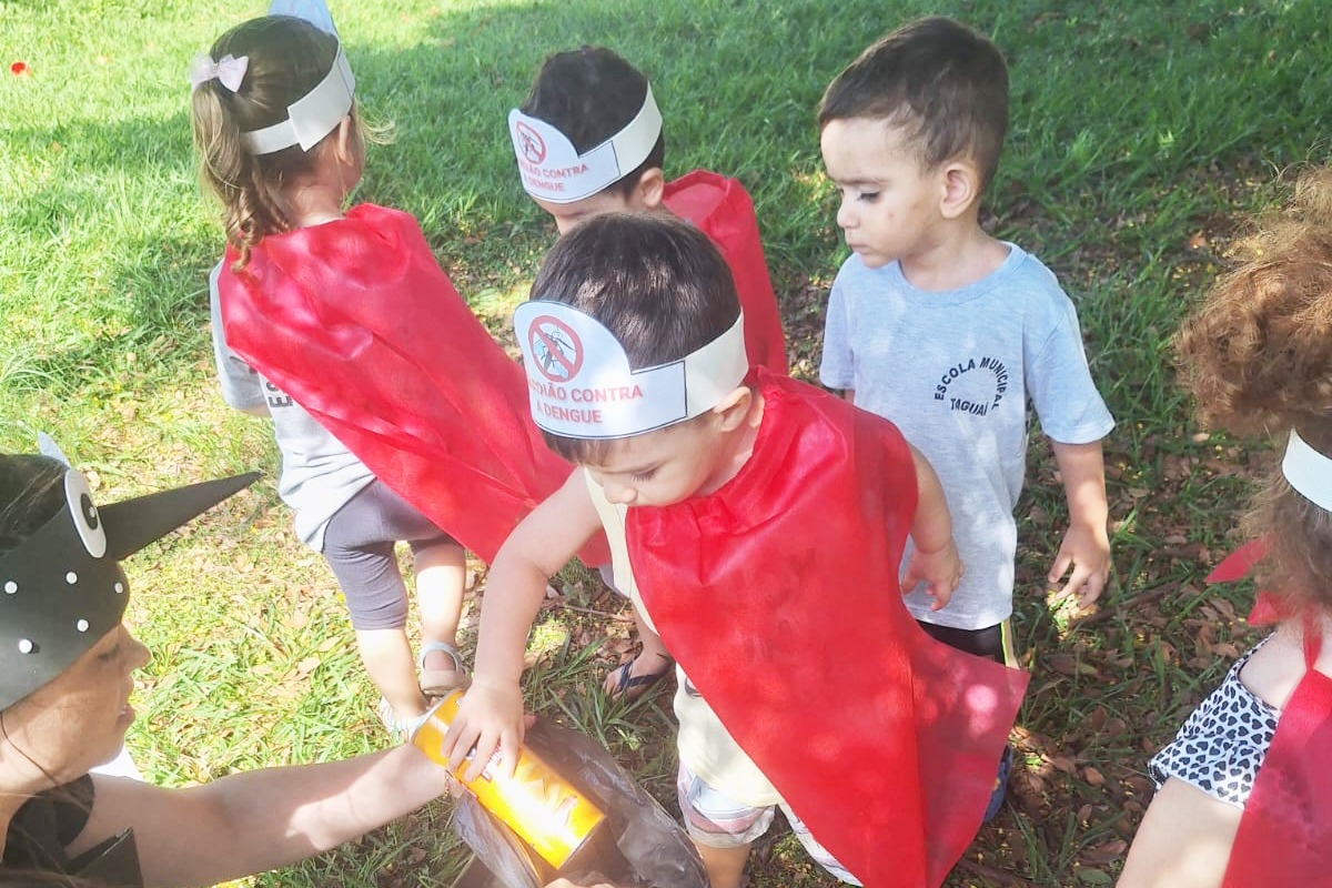 Por meio de brincadeiras, experiências e vivências, os pequenos aprenderam sobre a importância de manter os ambientes limpos e livres de água parada, tornando-se verdadeiros agentes no combate à dengue. As ações buscaram estimular o cuidado diário e a responsabilidade com o espaço em que vivem.
