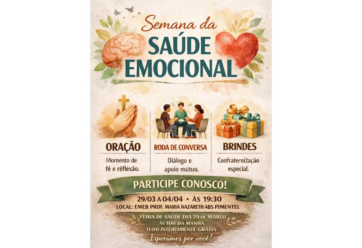 O trabalho continua no próximo domingo, dia 29, quando a Feira de Saúde chega ao bairro Camargo, na Escola Maria Nazareth Pimentel, na Rua João Manoel Fernandes, 400, das 10h às 12h. No mesmo local, também será realizada a abertura de uma nova edição da Semana da Saúde Emocional, com programação a partir das 19h30, incluindo momentos de oração, roda de conversa, apoio mútuo e confraternização.