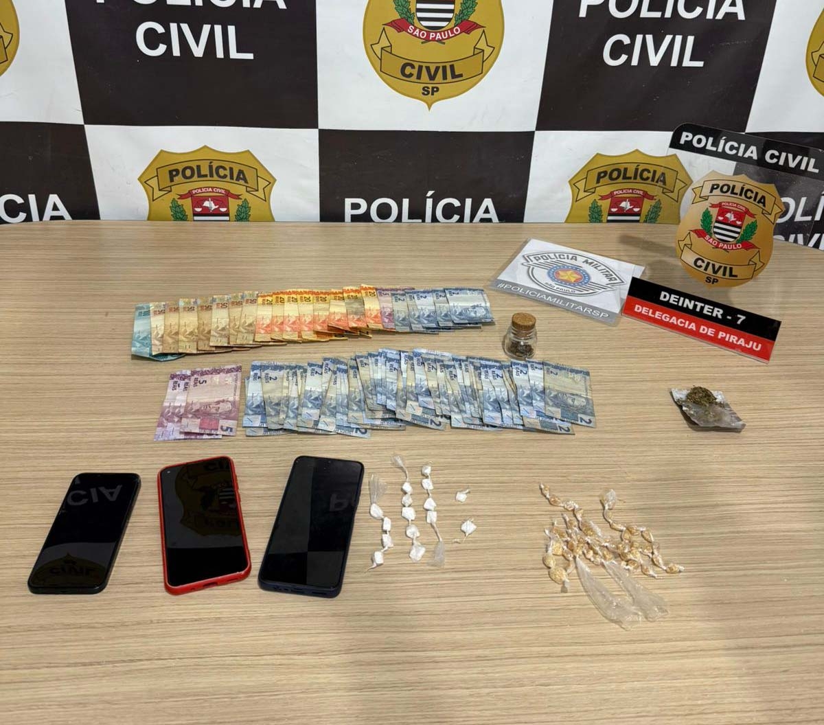 Durante a operação, os policiais apreenderam expressiva quantidade de drogas e diversos objetos relacionados à atividade criminosa. Foram recolhidas aproximadamente 10 gramas de cocaína, 17 gramas de crack, além de porções de maconha e uma unidade de ecstasy, parte delas já fracionadas e prontas para a comercialização. Também foram apreendidos R$ 814,30 em dinheiro, em notas e moedas de pequeno valor, bem como quatro aparelhos celulares, os quais serão submetidos à análise para auxiliar no aprofundamento das investigações.