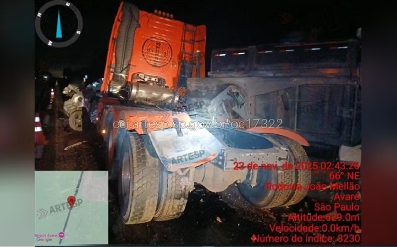 O acidente ocorreu por volta das 2h, no km 272, segundo o Centro de Controle Operacional da SPVias.