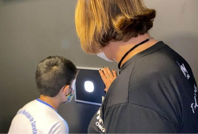Uma das atividades acontece dentro da unidade móvel: no caminhão, os alunos entram na câmera escura, um ambiente que simula como funciona uma câmera fotográfica por dentro. É um momento cheio de surpresas e descobertas, em que os alunos aprendem, na prática, sobre a formação da imagem e incidência da luz. Já as fotografias realizadas pelos alunos durante a oficina online são impressas e transformadas em uma linda exposição. Ela estará aberta para a visitação de toda a comunidade, aumentando o impacto das fotografias e das mensagens criadas pelos alunos.
