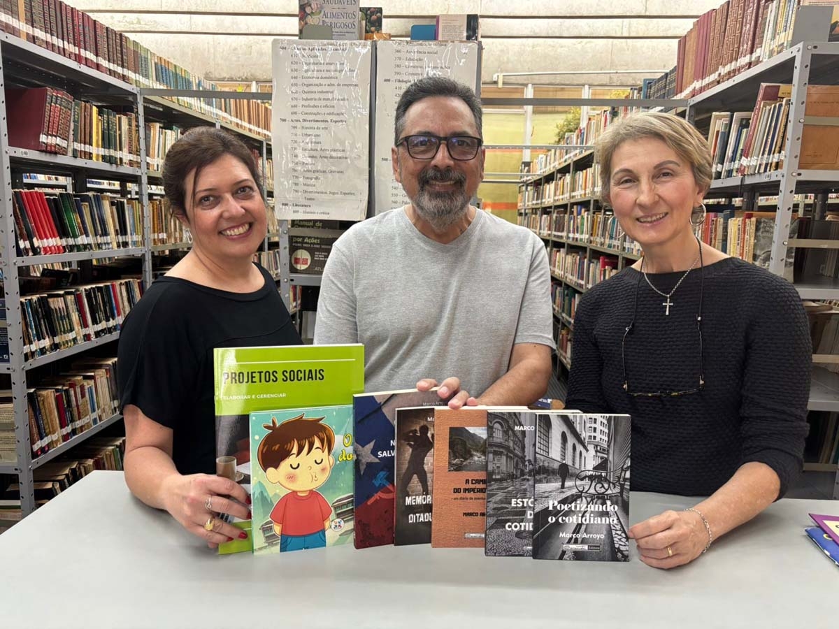 Na sexta-feira (3), o escritor Marco Arroyo visitou a Biblioteca Municipal Prof. Roberto Moreira, em Fartura, a convite da assistente social do Fórum do município, Paula Márcia Teixeira. Recebido pela bibliotecária Luciane Erustes Domingues, o autor realizou a doação de parte de sua produção literária ao acervo da instituição, gesto que marca um reencontro afetuoso com a cidade e sua comunidade.