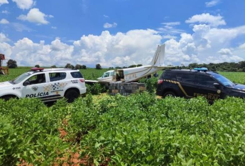 A aeronave carregada de entorpecentes voava em baixa altitude, até que o piloto fez uma manobra e realizou um pouso forçado em meio a plantão de soja, segundo a FAB.