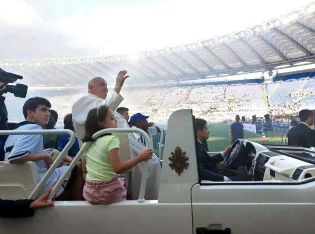 Cerca de 70 mil crianças de todas as partes do mundo se encontraram com o Papa Francisco no Estádio Olímpico de Roma e Ana Luzia, que faz parte do projeto Devotos Mirins do Santuário Nacional de Aparecida, teve não só a oportunidade de conhecer o Santo Padre como também deu uma volta no Papamóvel.