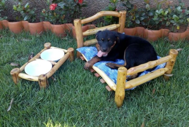 “O projeto começou há mais de 15 anos e eu tinha em mente uma aposentadoria para o futuro, onde fiz um plantio de Guanandi e Teca, voltado a investimento em uma propriedade em sociedade com o meu cunhado Décio Soares. Depois de cinco anos (2010) comprei a parte do meu cunhado e com o passar do tempo procurei utilizar as sobras das madeiras, pois eu tinha que ralhar as árvores tirando as mais finas e tortas, até para as outras terem mais espaço para crescer até o corte final. E aí procurando usar essas madeiras foi que conheci, também fazendo pesquisar na internet, os móveis para pet”, contou Pardal.