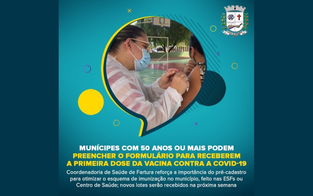 A Coordenadoria de Saúde de Fartura optou pelo sistema de escalonamento para evitar aglomerações no momento da vacinação. Esse modelo foi adotado desde a última quarta-feira (16) para atender as pessoas de 50 a 59 anos, que ainda não conseguiram se vacinar contra a Covid-19.