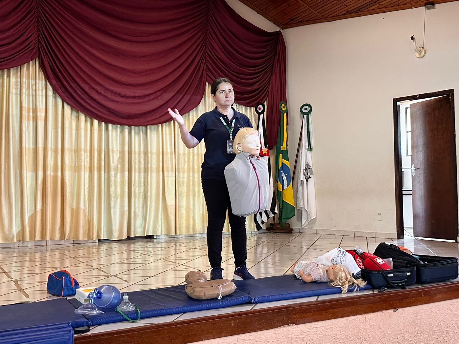 A capacitação foi conduzida pela enfermeira Marcela Mantovani e teve como foco orientar os profissionais da educação sobre como agir em situações de emergência no ambiente escolar, reforçando a importância da prevenção e da resposta rápida em casos de acidentes ou intercorrências de saúde.