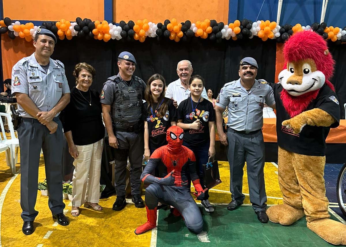 A cerimônia contou com a presença do Capitão Felipe Andrade Encarnação e do 1º Sargento Gilson Aparecido Ferreira, responsáveis pela condução do programa no município. Representando o poder público local, estiveram presentes o prefeito Marcão do Haras, a primeira-dama, a vice-prefeita Célia Regina Erustes da Costa, a secretária de educação Renata Amaro, as supervisoras Silvandreia Lantazio Palma e Flávia Ribeiro, além das equipes gestoras das escolas João Batista de Oliveira, Miguel de Góes Vieira e Cefar. O Conselho Tutelar de Fartura também participou, reforçando o compromisso com a proteção integral de crianças e adolescentes.
