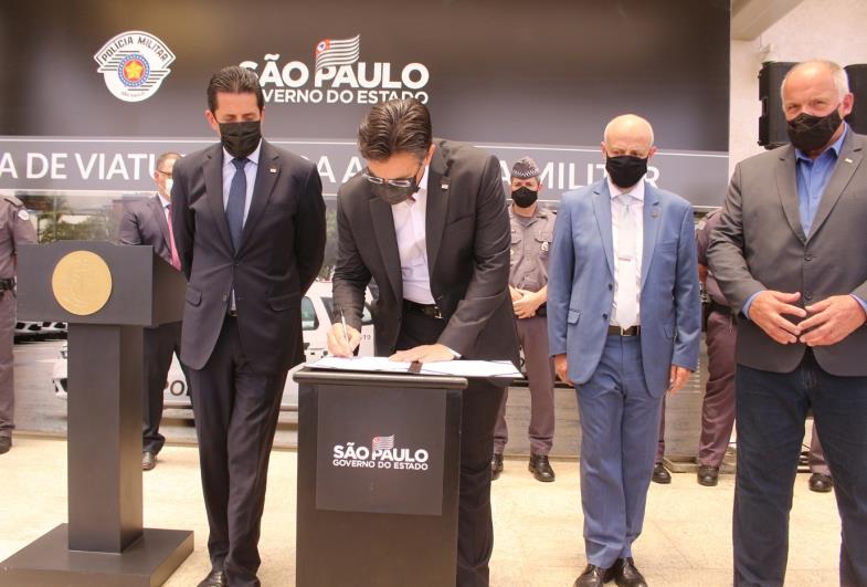 O Governador em exercício Rodrigo Garcia realizou nesta terça-feira (21) a entrega de 875 novas viaturas para os batalhões de o todo estado da Polícia Militar, em um investimento de R$ R$ 84 milhões. Na ocasião, Rodrigo Garcia também autorizou a contratação de 378 candidatos aprovados em concursos públicos da Polícia Civil durante solenidade no Palácio dos Bandeirantes.