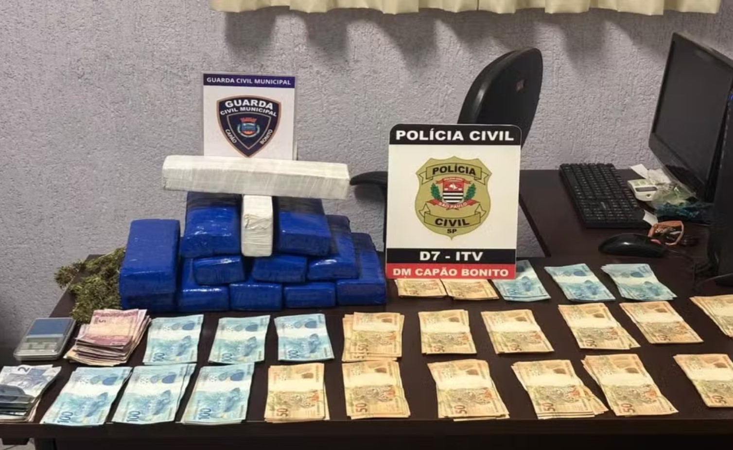 Ao perceber a presença dos agentes, o homem tentou fugir para dentro de uma residência, mas foi detido. No imóvel, foram apreendidos mais de nove quilos da droga, pés da planta, uma balança de precisão, R$ 25 mil em dinheiro e um carro.