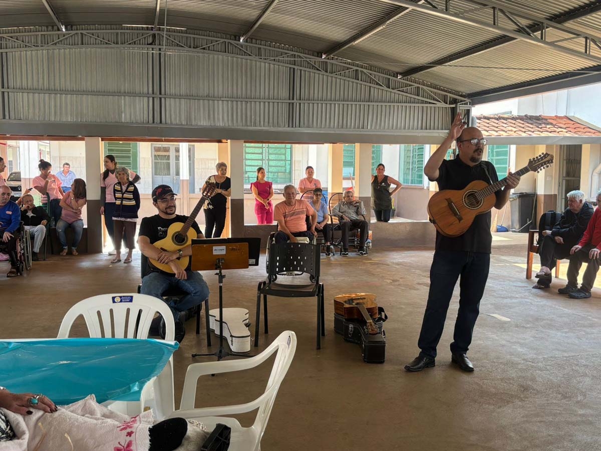 A ação reuniu idosos do Centro de Convivência do Idoso e do Lar São Vicente de Paulo, promovendo uma integração calorosa entre os participantes. Através da música, a iniciativa buscou mais do que entretenimento: foi um convite para o resgate de memórias afetivas, o fortalecimento dos vínculos sociais e a valorização das vivências individuais e coletivas.