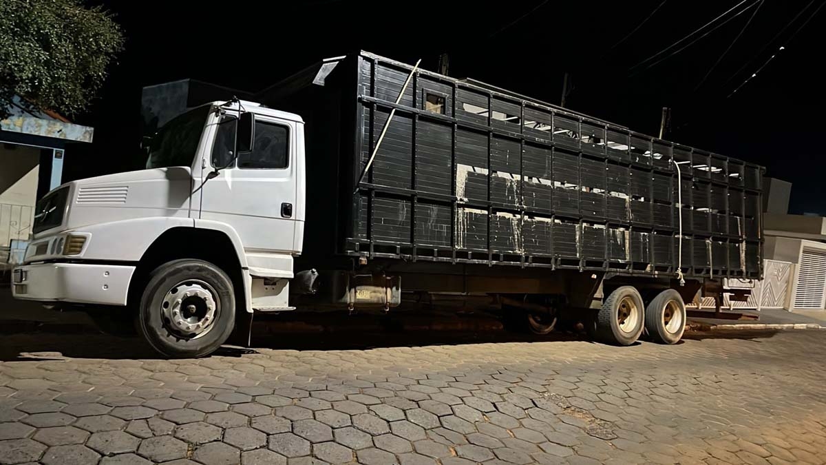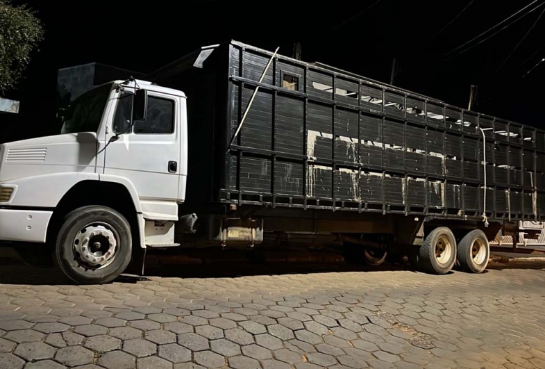Durante a ação, o investigado chegou a uma das propriedades conduzindo um caminhão Mercedes-Benz L1418, com carroceria boiadeira. A análise preliminar indicou indícios de adulteração no chassi e a apresentação de um Certificado de Registro e Licenciamento de Veículo (CRLV) suspeito de falsificação.