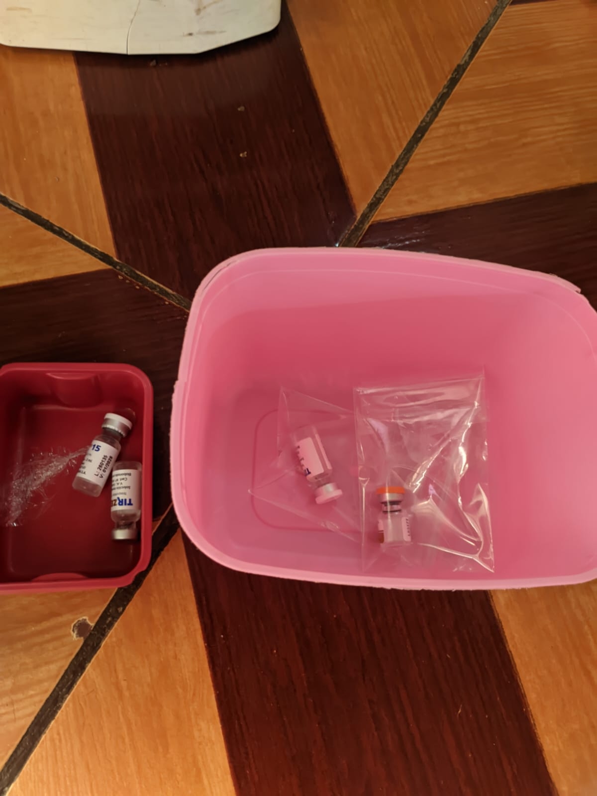 Durante as diligências, os policiais localizaram e apreenderam ampolas de Tirzec 15 e TG 15, algumas lacradas e uma já aberta, além de seringas, agulhas e outros materiais médicos, indicando possível uso ou destinação irregular das substâncias.