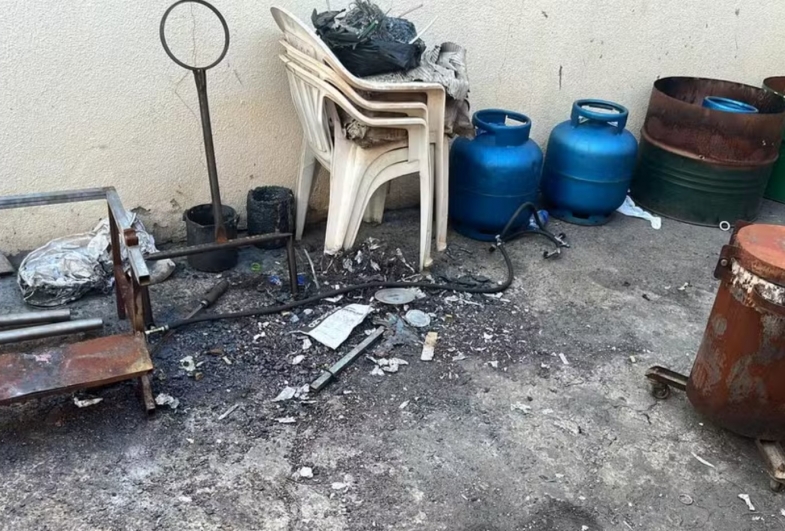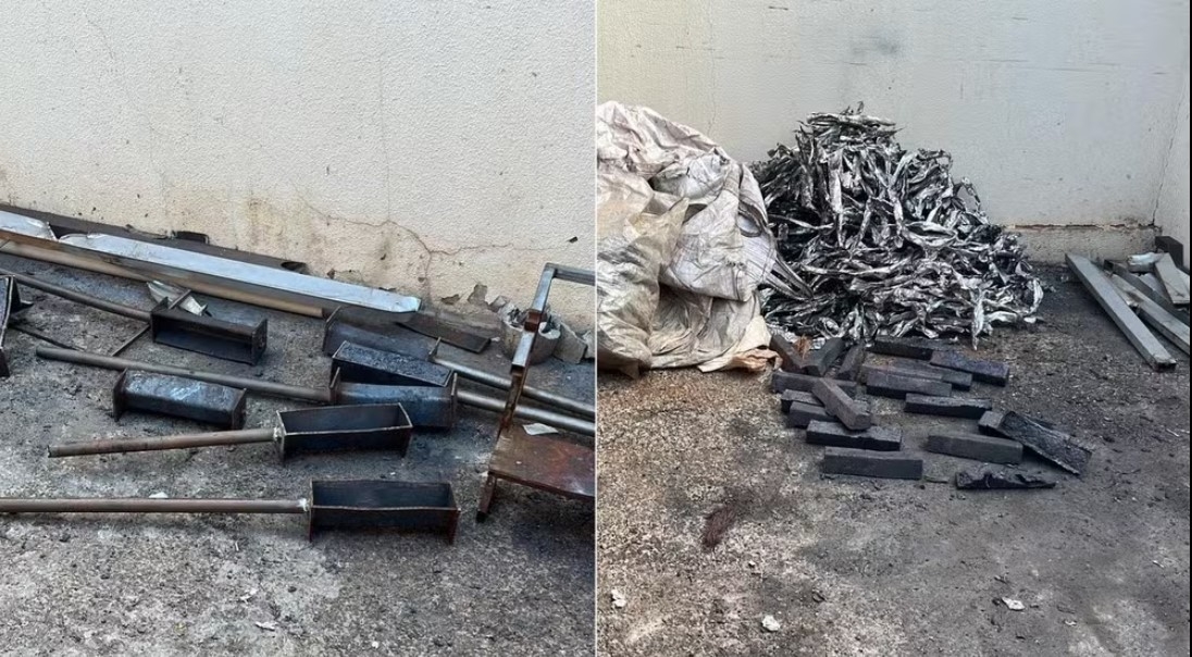 No quintal do imóvel, os policiais encontraram uma estrutura usada para o derretimento do cobre, com caldeiras, botijões de gás adaptados, formas metálicas e outros equipamentos.