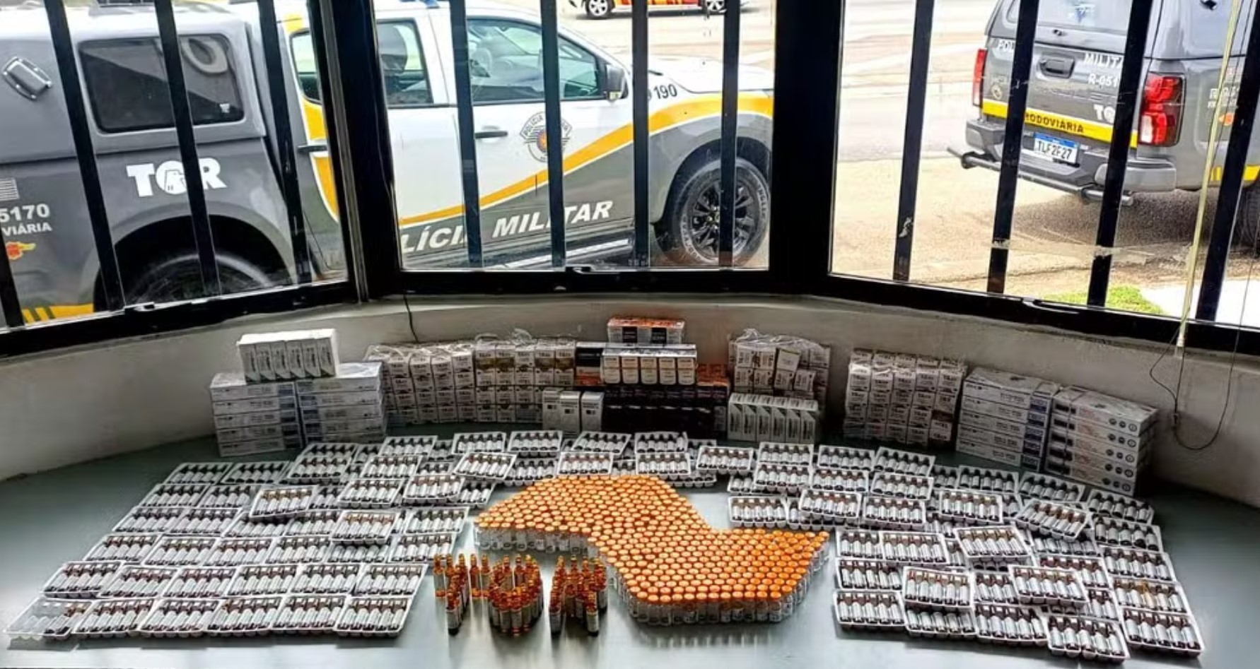 Segundo a polícia, os produtos tinham como princípio ativo a tirzepatida fabricada no Paraguai. Durante a abordagem, duas pessoas foram presas em flagrante.