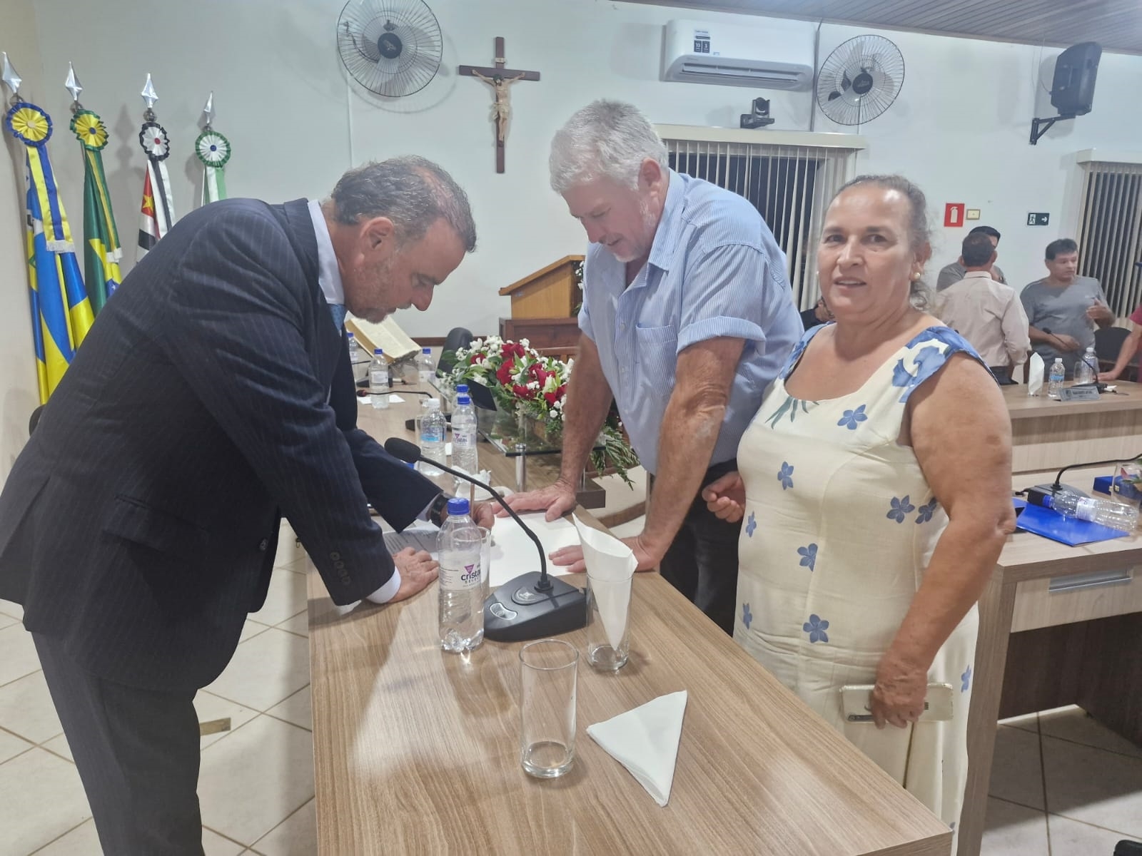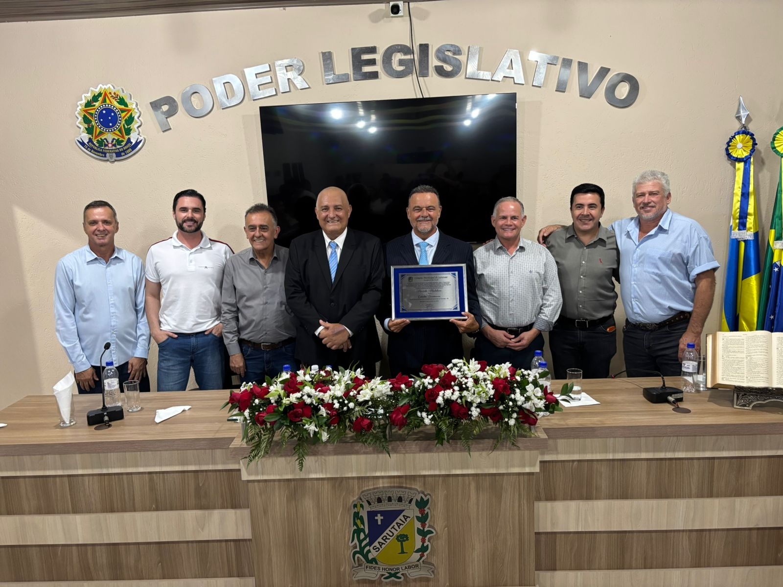 O prefeito de Tejupá, Roberval de Oliveira, e a primeira-dama Elza participaram da cerimônia de entrega do título de cidadão Sarutaiense ao deputado Ricardo Madalena, em um evento marcado por reconhecimento, diálogo institucional e anúncio de importantes conquistas para o município.
