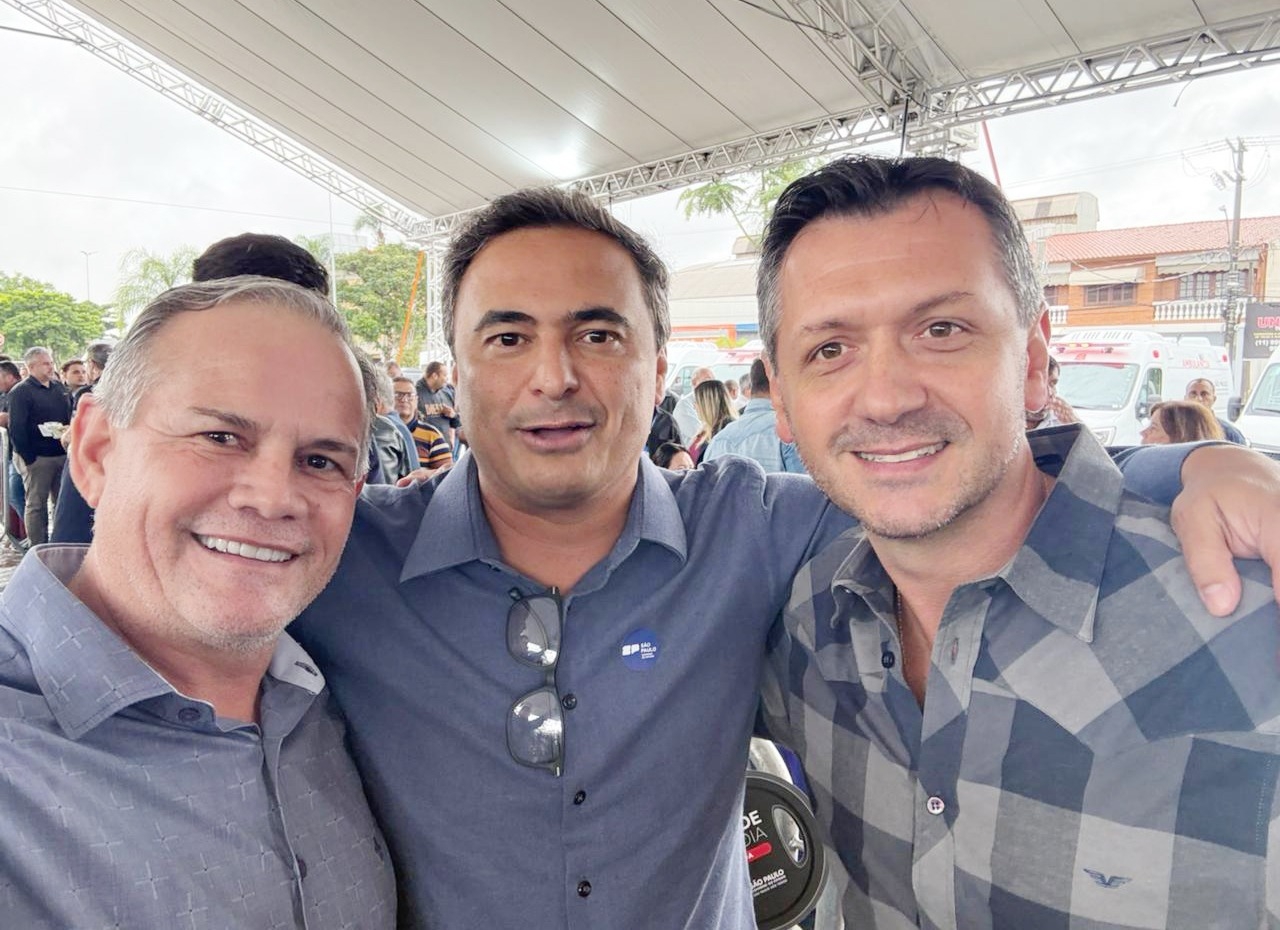 O prefeito de Taguaí, Edinho Fundão, e o vice-prefeito Rafael Corona participaram nesta quinta-feira (12) em Itu, da cerimônia de entrega de novos veículos destinados à área da saúde, realizada pelo governador do Estado de São Paulo, Tarcísio de Freitas.