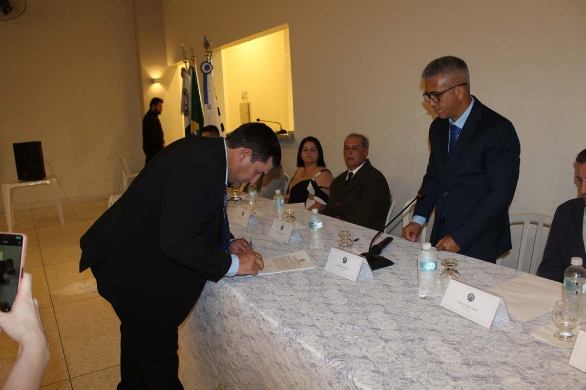 Após todas as autoridades serem chamadas para compor a mesa e os hinos nacional e do município entoados, os vereadores fizeram o juramento em conjunto, assinaram o termo de posse e assim foram empossados para a legislatura 2025/2028.