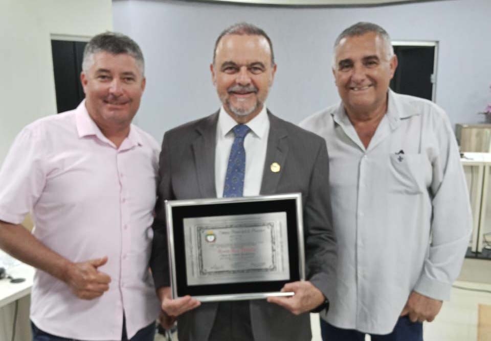 A honraria foi indicada pelo vereador Emílio, em reconhecimento ao trabalho e à dedicação do parlamentar em prol da região, sempre atuando para fortalecer os municípios e apoiar demandas importantes da população.