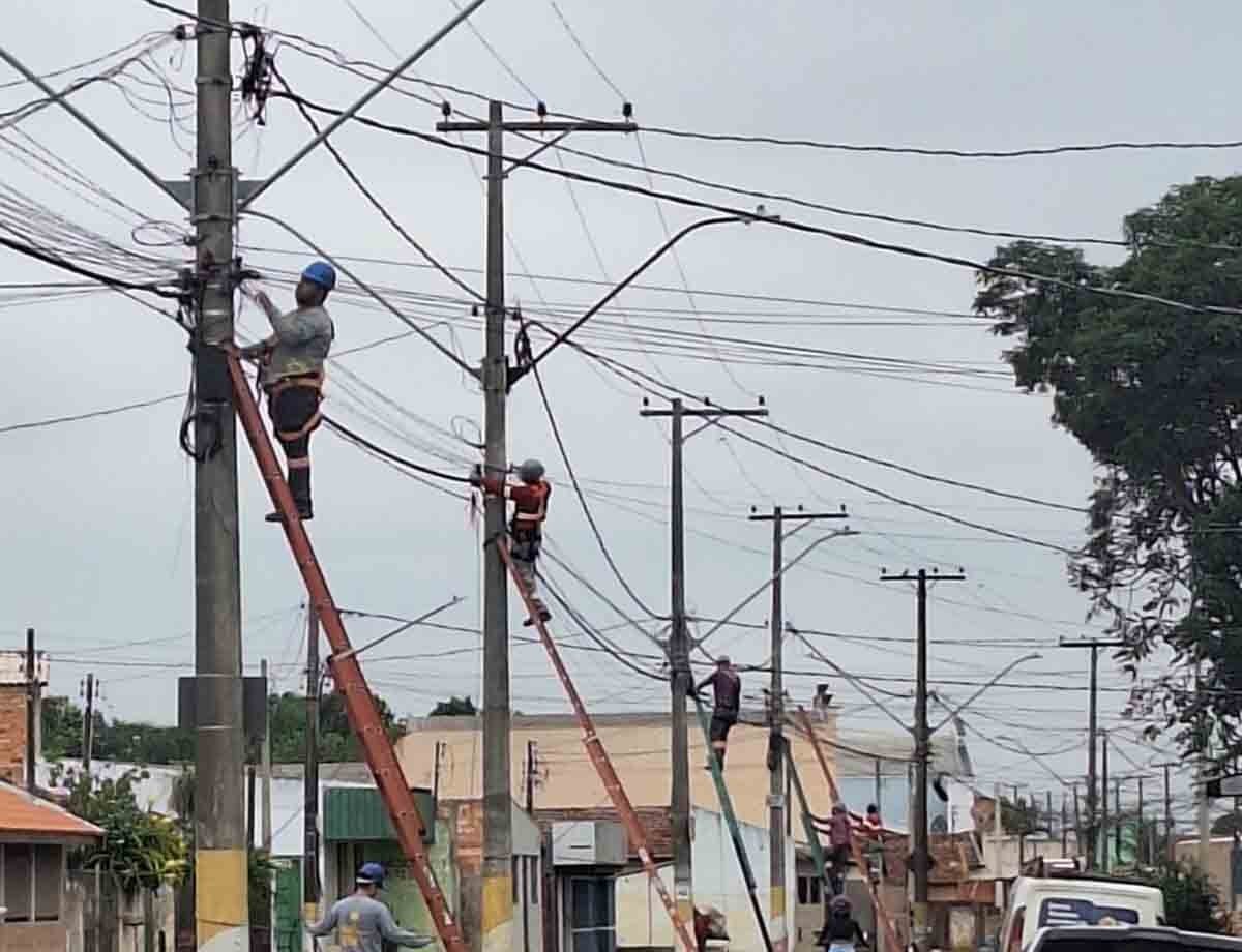 Na área central, o trabalho já foi realizado. A ação tem o objetivo de eliminar fios sem uso e organizar a fiação emaranhada nos postes. A CPFL orienta nunca se aproximar de cabos rompidos ou caídos no chão.