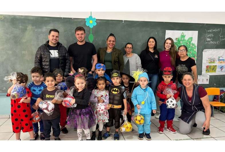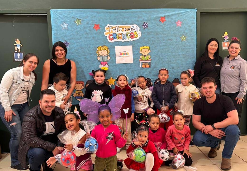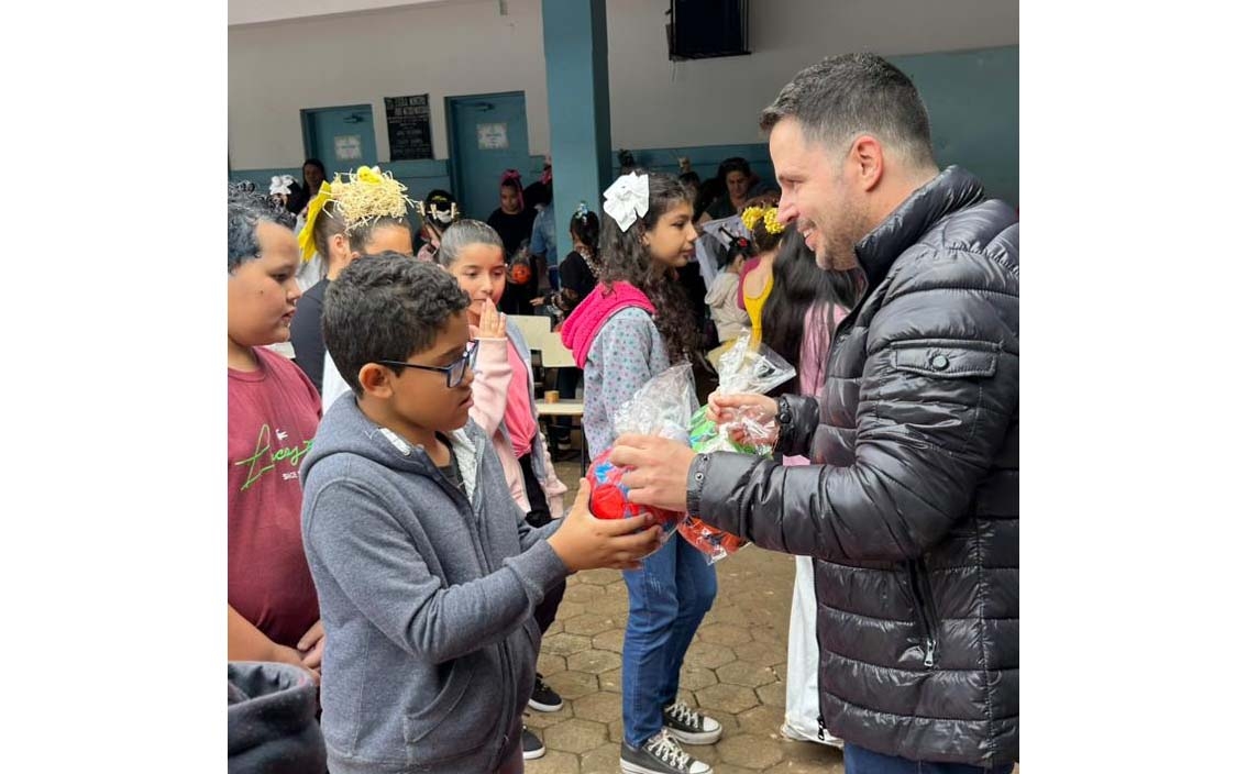 Todas as crianças da rede de ensino municipal receberam os presentes, transformando o ambiente escolar em uma festa. “Ver o sorriso de cada criança é o maior presente que podemos receber”, disse o vice-prefeito Vinicius Tonon.