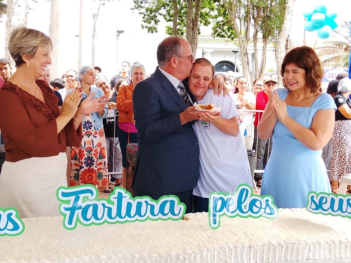 Representando simbolicamente a população farturense, o bolo foi entregue ao jovem Léo, garoto que recebeu a homenagem visivelmente emocionado, tornando o momento ainda mais especial e significativo para todos os presentes.