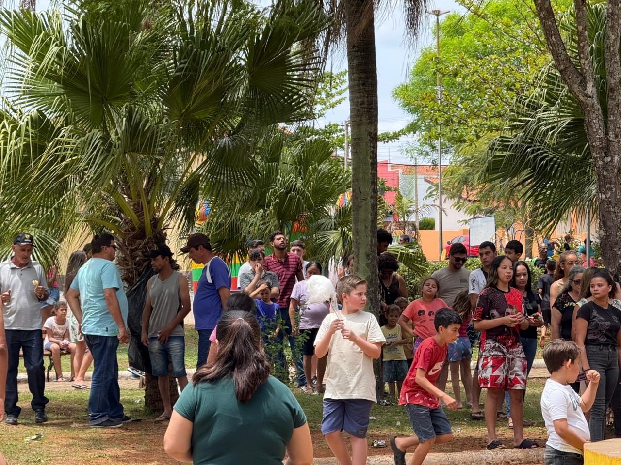 A Praça Adolfo Ramos da Silva ficou completamente lotada neste domingo (26) durante a tradicional Festa das Crianças, promovida com muito carinho pela Prefeitura de Sarutaiá, por meio dos Departamentos de Ação Social e Educação.
