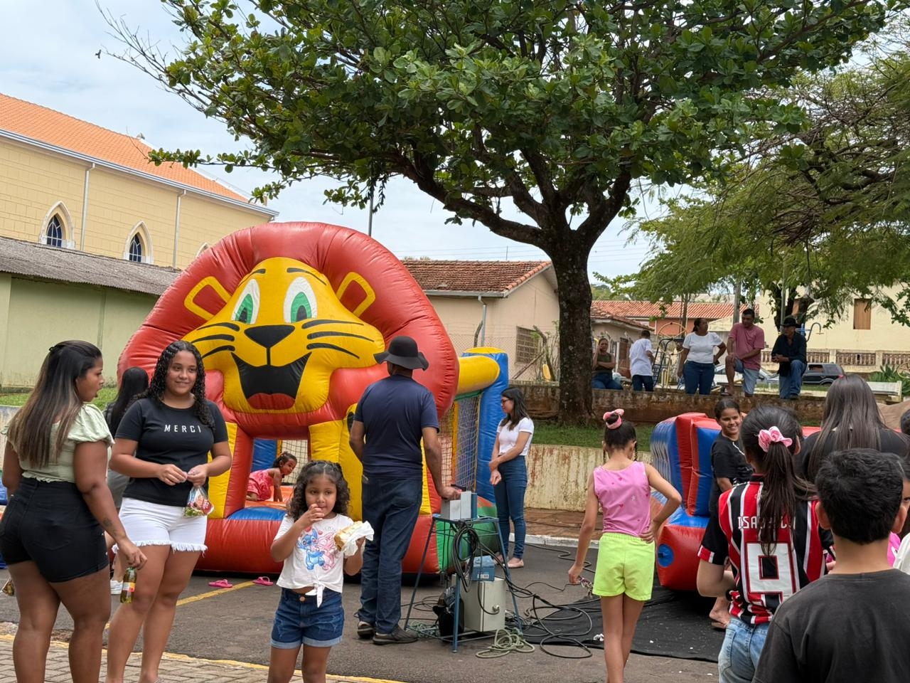 Foi um dia inesquecível para a garotada, marcado por muita alegria, diversão e brincadeiras. As crianças se esbaldaram nos brinquedos infláveis, pula-pulas, touro mecânico e outras atrações preparadas especialmente para elas.