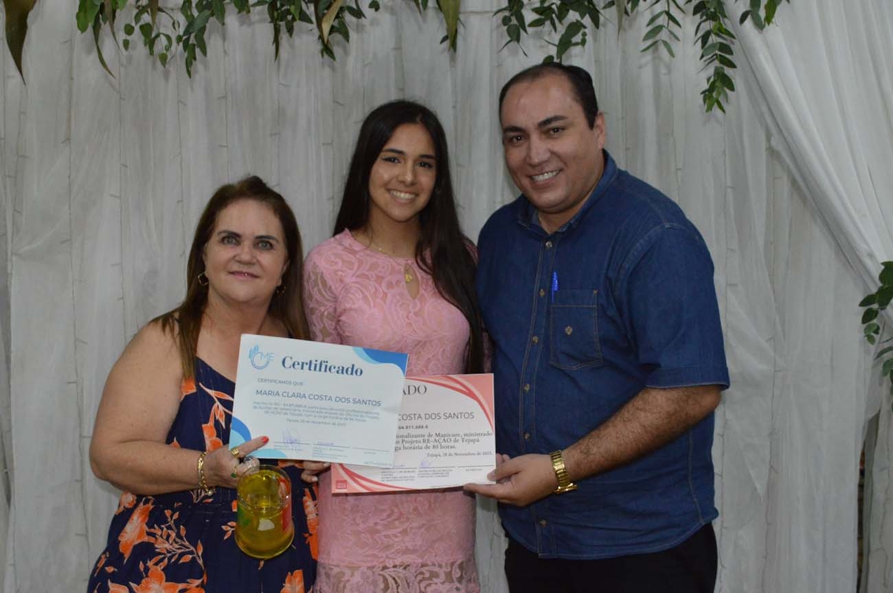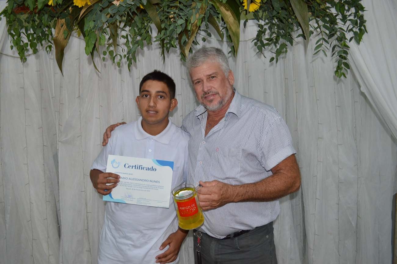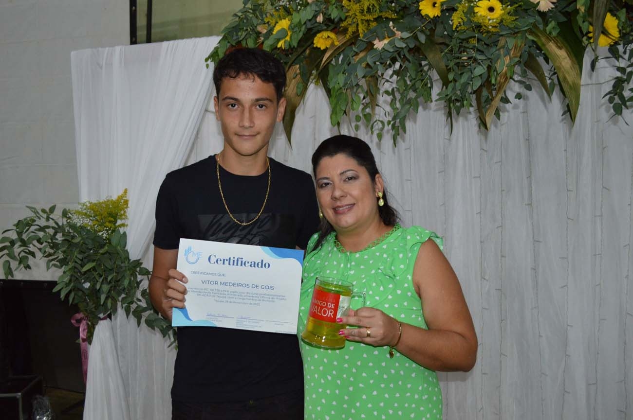 No final da solenidade os formandos receberam seus certificados, uma lembrança e os cumprimentos de todos os presentes por terem alcançado mais uma conquista em suas vidas.