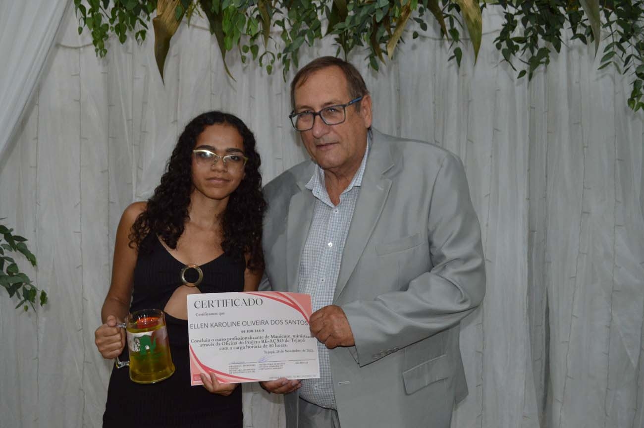 A Prefeitura Municipal de Tejupá através da Secretaria Municipal de Assistência Social promoveu no dia 01 de dezembro, a pedido do Prefeito Valtinho Boranelli a cerimônia de Formatura dos cursos Atendente de Farmácia, Auxiliar de Veterinária, Oficina de Beleza e Barbeiro do Projeto Re Ação.