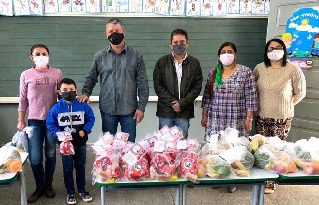 No Kit Junino foram entregues doces de abóbora, batata doce, gibi, paçoca e pipoca doce e no Kit Frutas com banana, abacate, maçã, mexerica e laranja. É oportuno frisar que os kits são confeccionados pela equipe de funcionárias da Cozinha Piloto. O prefeito Silvinho Polo esteve nas Unidades Escolares fazendo as entregas e agradeceu as equipes da educação e Cozinha Piloto. “Chegamos ao final do primeiro semestre e aproveito o momento para agradecer nossa equipe da educação pelo empenho neste período de pandemia, bem como as colaboradoras da Cozinha Piloto que prepararam tão bem as alimentações seja no período das aulas presenciais, como no ensino hibrido, pois entregamos os kits com apoio delas”, disse.