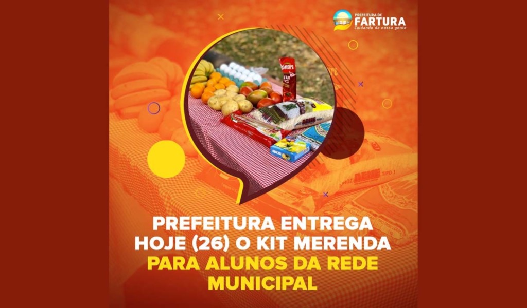 A Prefeitura, por meio da Coordenadoria de Educação de Fartura, informa que nesta quinta-feira (26/08), será entregue o “Kit Merenda” para todos os alunos matriculados na rede municipal de ensino.