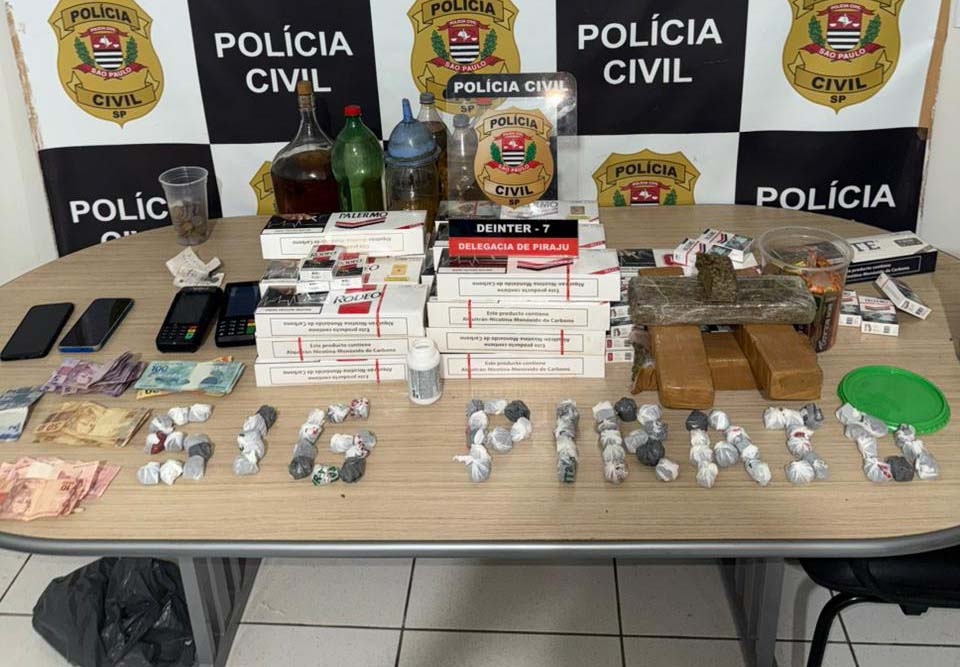 A Polícia Civil prendeu em flagrante, na quarta-feira, dia 8, um homem de 63 anos suspeito de tráfico de drogas e apreendeu bebidas alcoólicas sem procedência durante o cumprimento de mandado de busca e apreensão em um bar localizado na Praça Ataliba Leonel, no centro de Piraju. O local, que funcionava como ponto de venda de entorpecentes e produtos irregulares, foi interditado e lacrado.